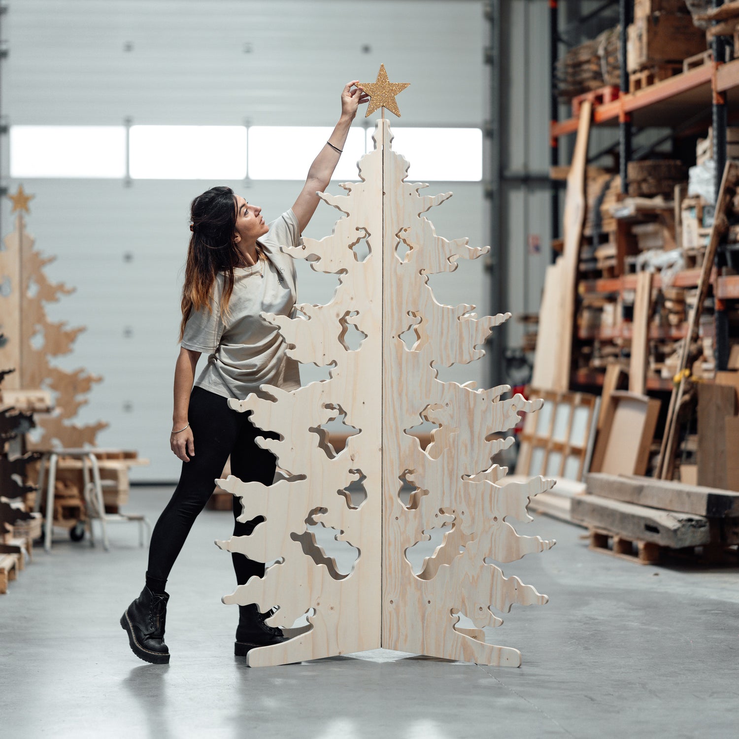 Plongez dans la magie de Noël avec nos sapins en bois ré-utilisables chaque année! Fabriqués dans notre atelier, ils sont en pin des Landes, fournis avec une étoile dans un étui de rangement.