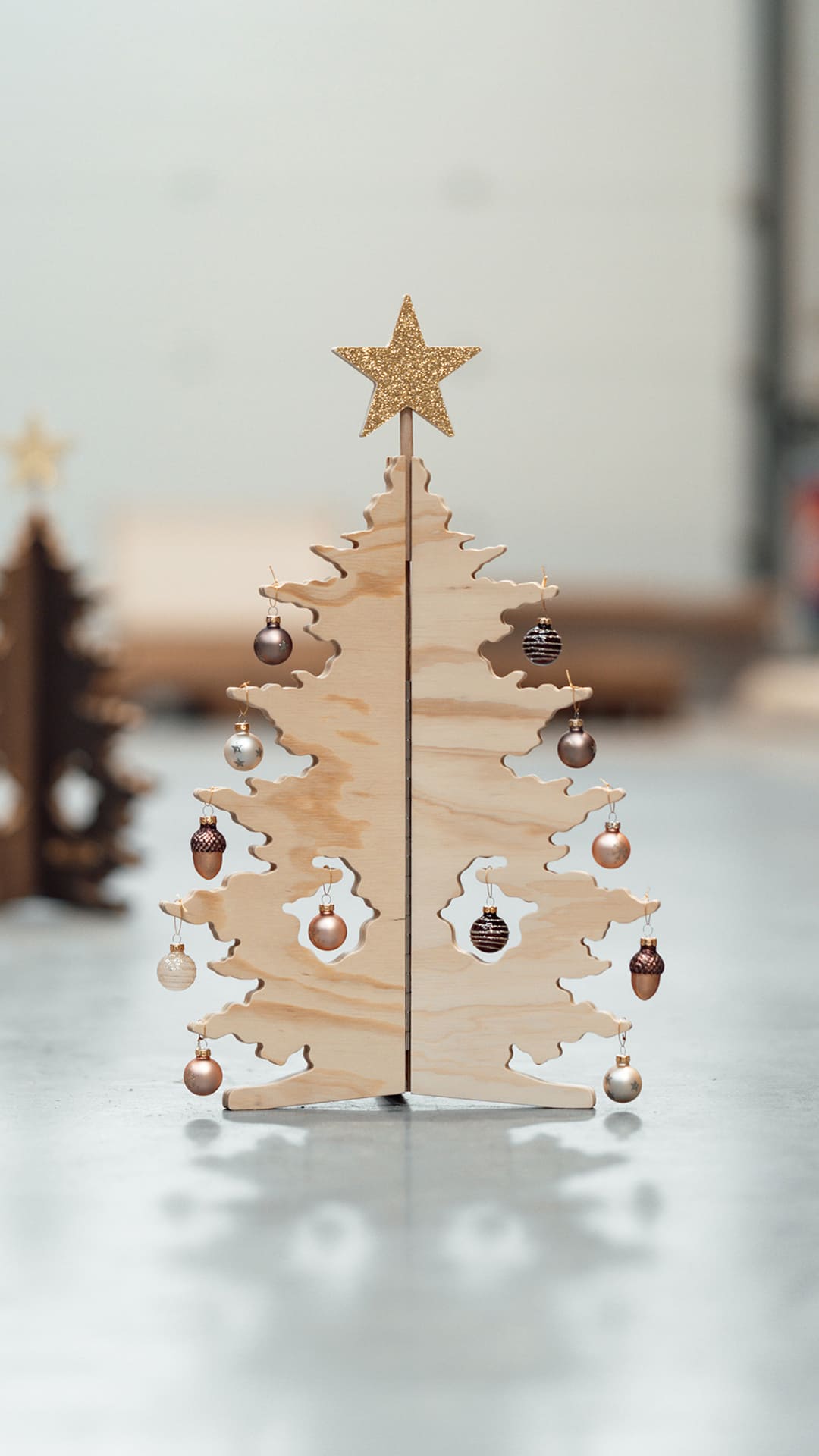 Plongez dans la magie de Noël avec nos sapins en bois ré-utilisables chaque année! Fabriqués dans notre atelier, ils sont en pin des Landes, fournis avec une étoile dans un étui de rangement.